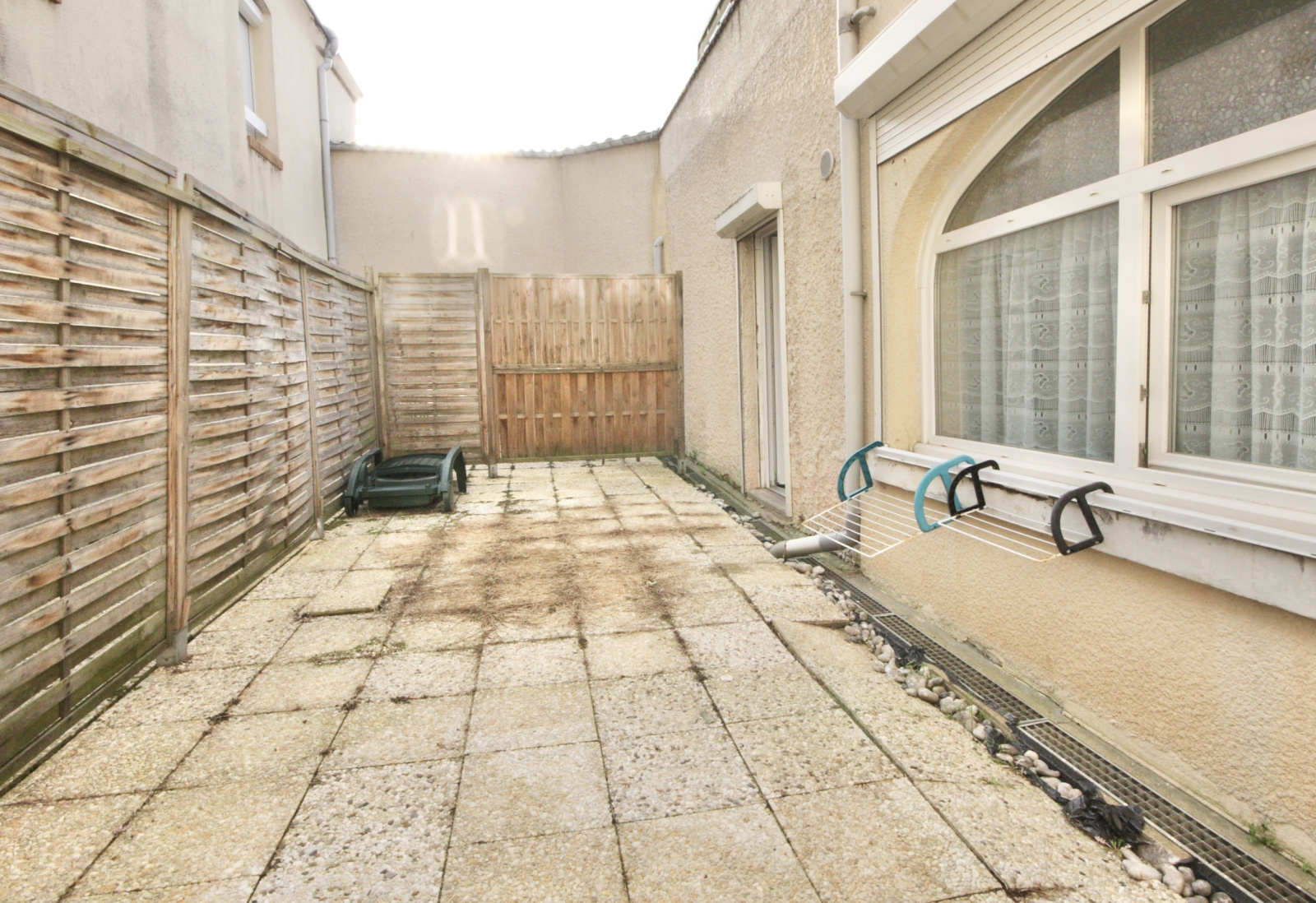 Séjour / chambre, cuisine agencée, salle de bains avec WC, Terrasse avec jouissance privative, chauffage electrique, tout à l'égout !